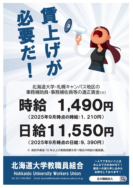 北大賃上げゼロに怒りを! たたかう仲間を増やし 賃上げの実現など、 労働環境を改善しましょう! |