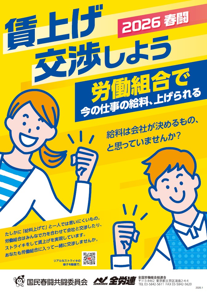 ![]() | たたかう仲間をふやして 働きやすい職場づくり 安心して暮らせる賃金を獲得しましょう | ![]() |